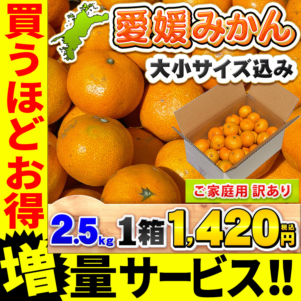 【2箱で送料無料、3箱でおまけ付き】訳あり 愛媛みかん 大小サイズ込み 2.5kg 家庭用 送料無料