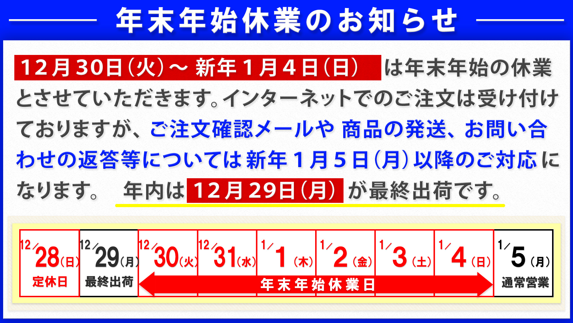 年末年始休業のお知らせ